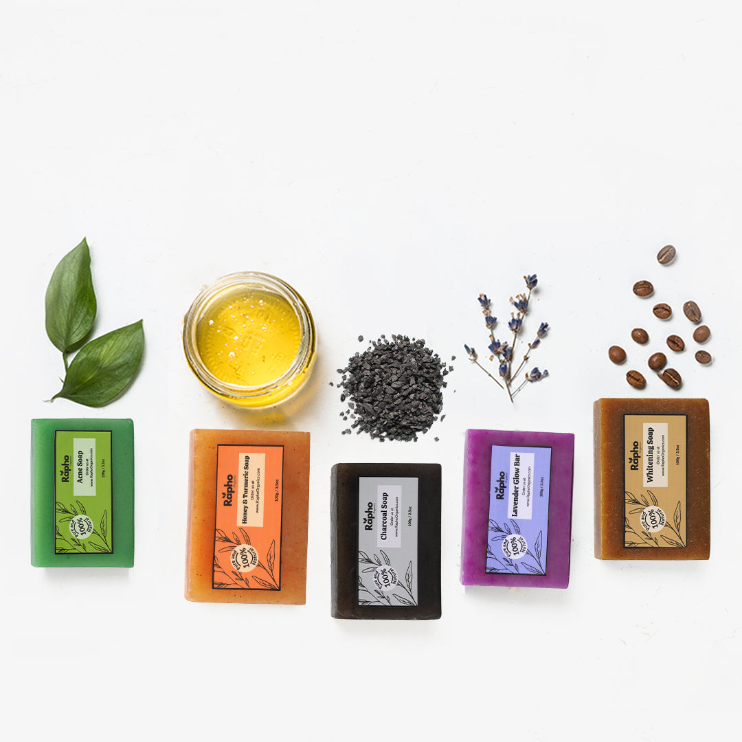Treat your skin with our handmade soap set, featuring five skin-loving bars for every need: