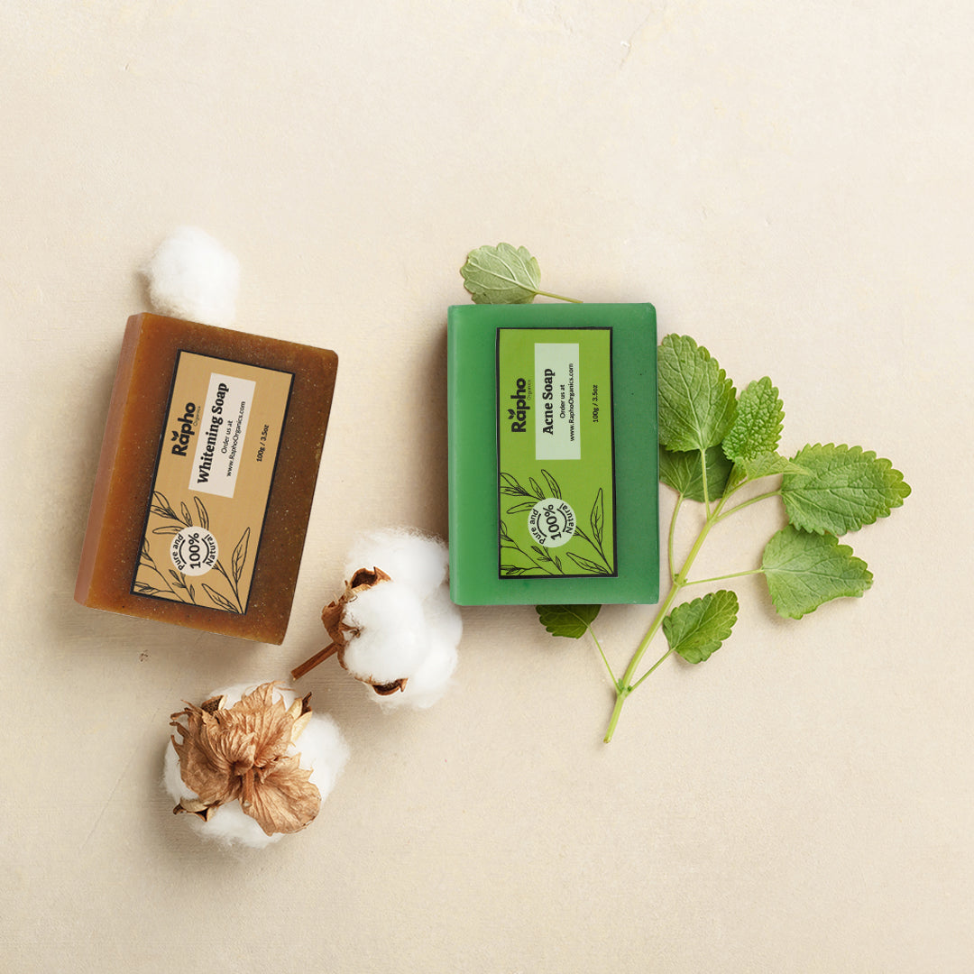 Target acne and dull skin with this powerful natural combo. Our Acne Soap fights pimples, controls oil, and clears pores, while the Whitening Soap fades dark spots and evens out your skin tone—naturally.